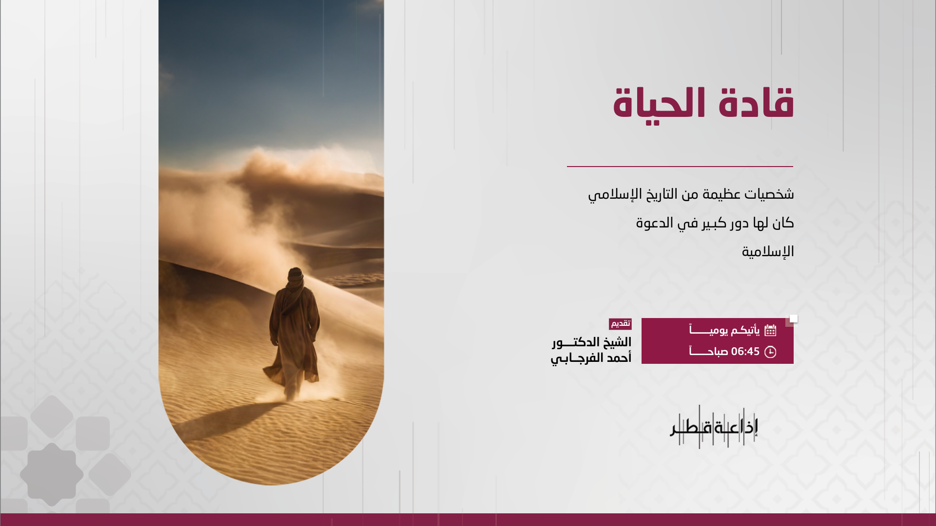 برنامج يتناول شخصيات إسلامية مختلفة من التاريخ الإسلامي وشرح دورهم الكبير في الدعوة الإسلامية ليستلهم منها الشباب قداوتهم.