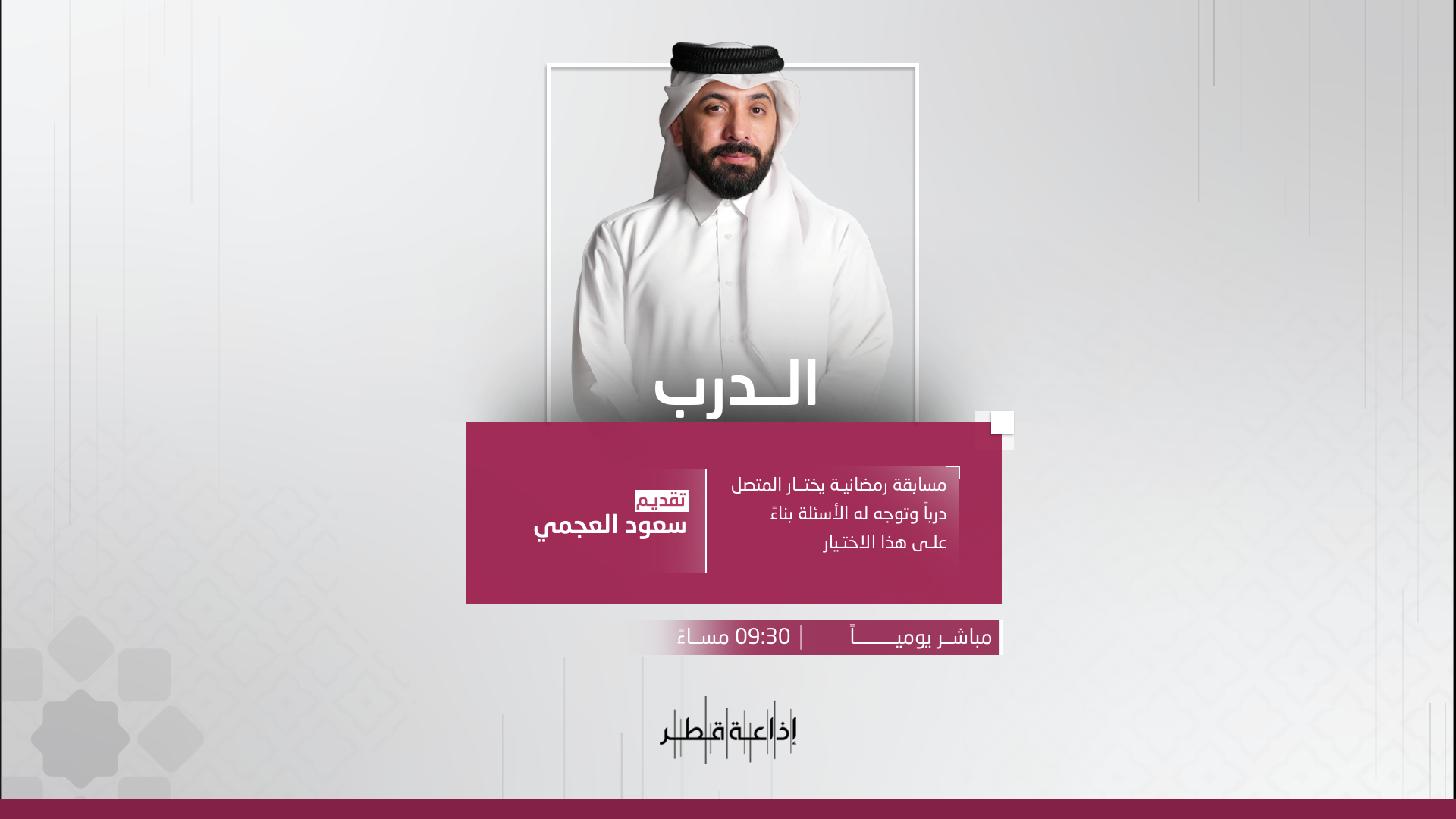 مسابقة على الهواء طوال شهر رمضان المبارك، تقدم محتوى ثقافيا منوعا، عن طريق أكثر من درب، ويختار المتصل الدرب الذي سيسلكه، ومن ثم يتم توجيه الأسئلة بناء على هذا الاختيار، بهدف اثراء الجانب المعرفي للمستمعين في إطار تنافسي.