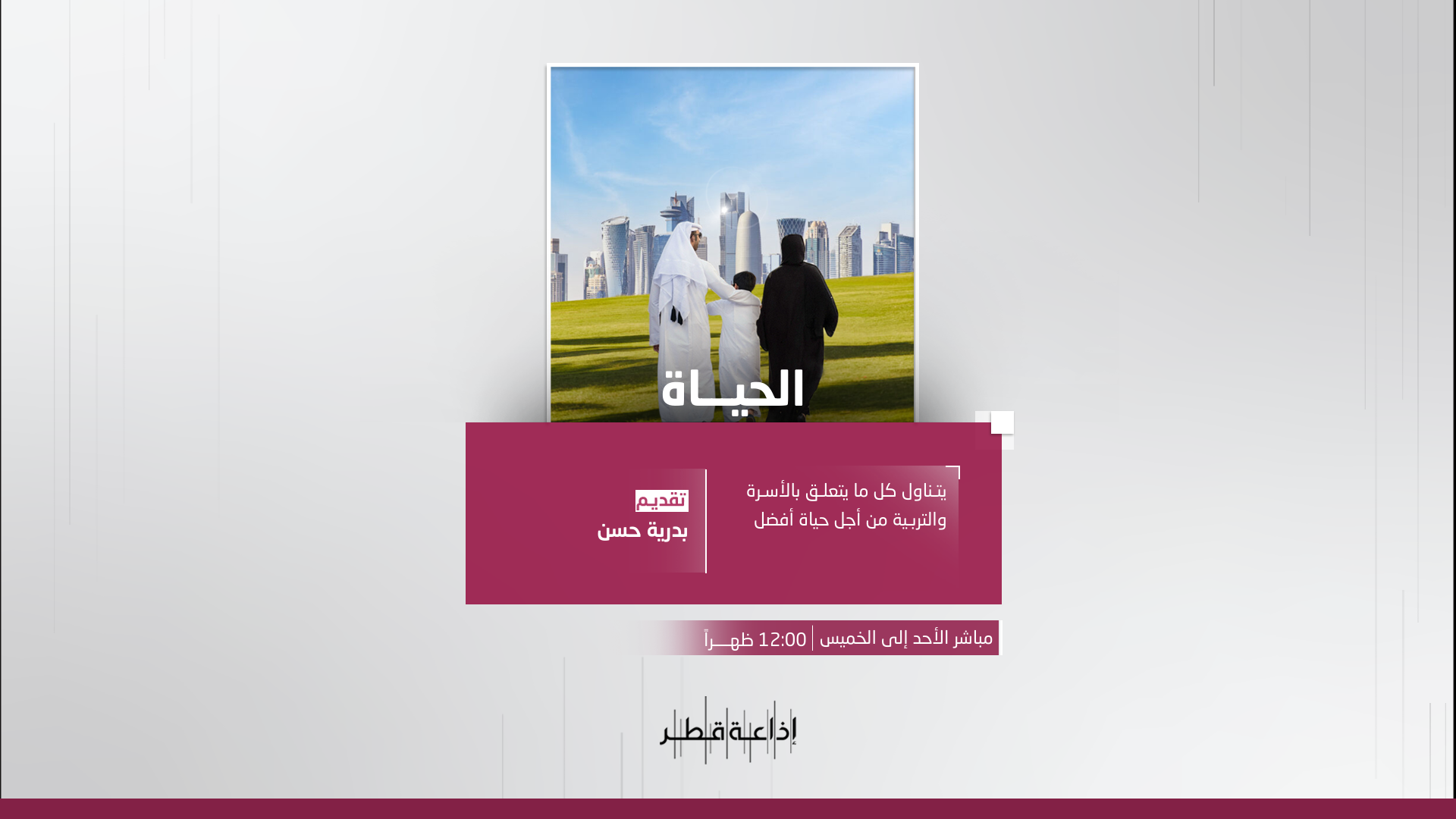 برنامج يتناول جوانب متعددة من الحياة . كما يتطرق إلى حقوق الأسرة في التربية و السلوك و القيم النبيلة من خلال ضيوف مختصين في هذة المجالات