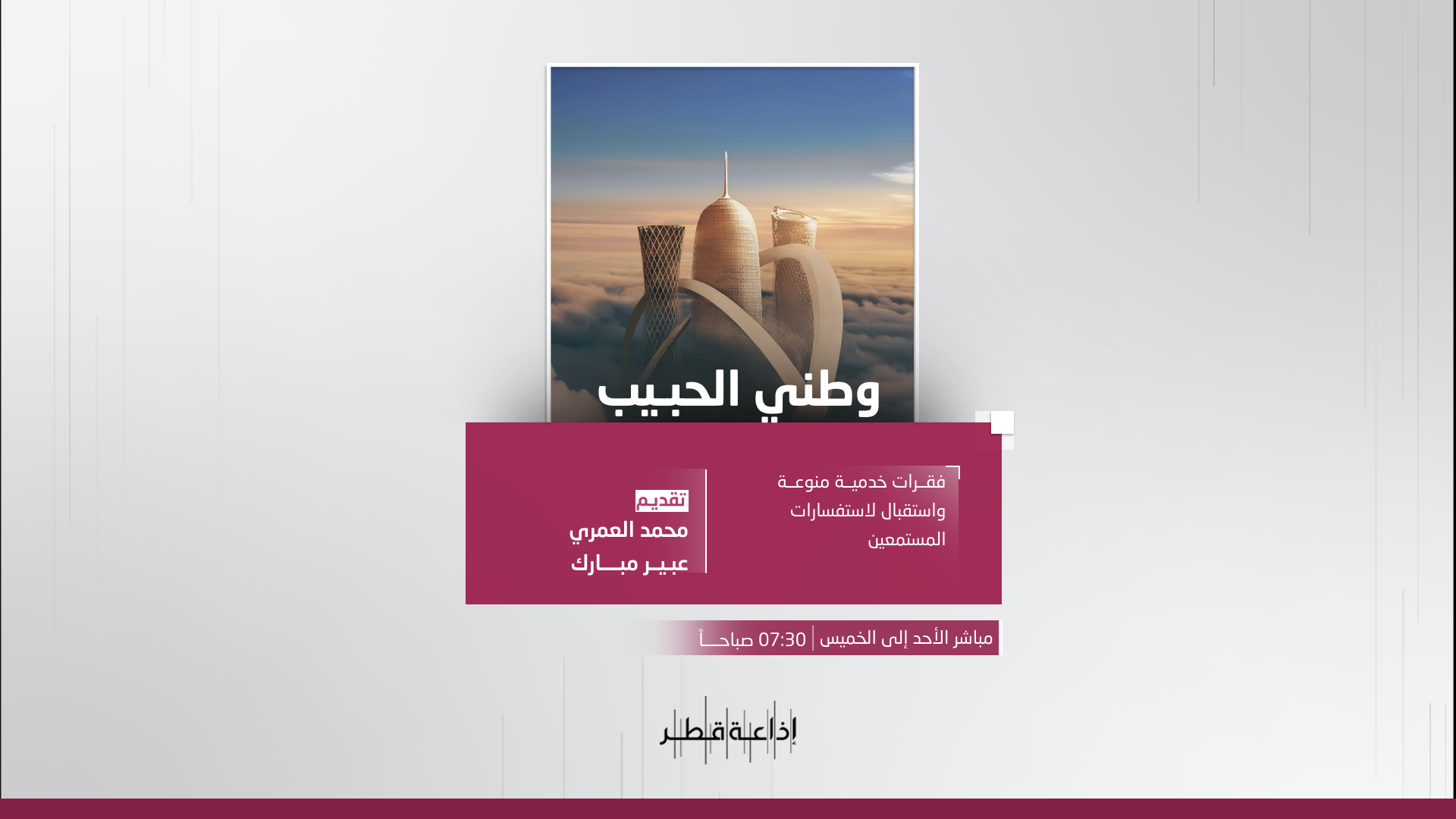 برنامج يقدم مجموعة من الفقرات الخدمية للمستمع كالأرصاد و الصحافة و الأسعار و غيرها , كما يتلقى مكالمات المستمعين التي تحمل شكاويهم و ملاحظاتهم حول التعامل مع الإدارات الحكومية .