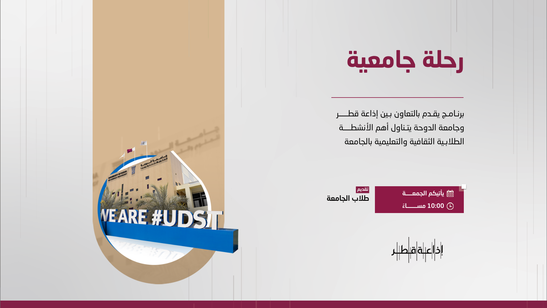 برنامج يقدم بالتعاون بين إذاعة قطر و جامعة الدوحة يتناول أهم الأنشطة الطلابية و الثقافية و التعليمية بالجامعة , و أبرز الأبحاث و الرسائل العلمية , يعده و يقدمه و يخرجه طلاب جامعة الدوحة تحت إشراف إذاعة قطر .